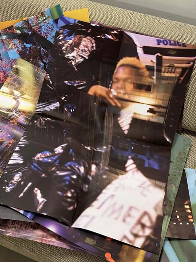 DBL (Double) presents a selection of photographic works by PJ (Paul John) in the form of eight folded posters. Through his pictures, PJ records fragments of the city — bits of architecture, shifting lights, fleeting events — without predetermined narrative or structure. Shot during walks, his photographs emerge from an intuitive and improvisational process. Over time, film rolls are revisited and re-exposed, resulting in liminal, tactile, timeless traces of his many dérives through town. DBL offers a reflection on movement, memory, and perception while exploring the beauty that can be found in an intentional partial loss of control.