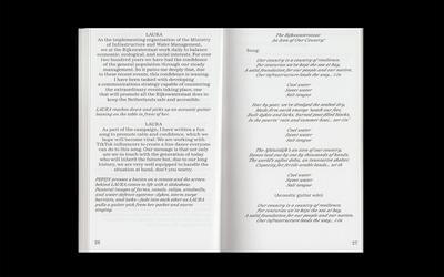 In fostering a transdisciplinary approach to their site and text-driven research, they additionally met and interviewed multiple people working with and by the water in the Netherlands — professionals ranging from sea-level researchers, millers, hydraulic engineers, artists, and farmers — and translated those explorations into the screenplay presented in this publication. In the interweaving storylines, traditional understandings of borders and forms of sentience are challenged as well as the archetypal setting for the Western film itself, resulting in a new, blurry frontier.