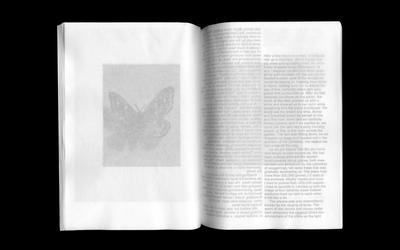 Printing: Xerox B/W on IBO One 60g, French fold, Singer stitching, foil on the cover and back-cover.